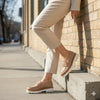 Découvrez l’élégance raffinée qui allie simplicité et confort avec ce mocassin féminin en cuir véritable, confectionné à la main par des artisans experts de la ville de Fès.